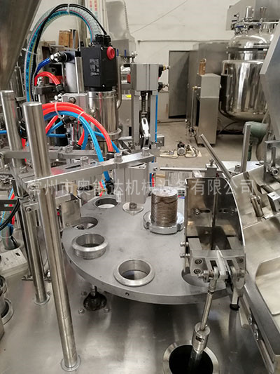 塑料復(fù)合軟管灌封機(jī)主要用于一次傳動原理。利用分度機(jī)構(gòu)帶動裝有夾具的轉(zhuǎn)盤作間歇運(yùn)動,完成自動灌裝及內(nèi)外加熱、封尾、壓碼、切邊、成品退出等一系列功能。灌裝計(jì)量準(zhǔn)確,加熱時(shí)間穩(wěn)定、可調(diào)、封尾外觀漂亮、整齊、牢固、衛(wèi)生。切邊平整。該機(jī)設(shè)為10個工位,除人工上管外,其它均可自動完成。整機(jī)運(yùn)行平穩(wěn)可靠,無噪音和其它污染。